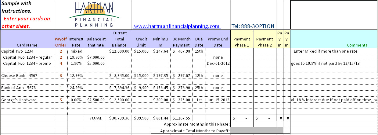 [ ] Rank the cards (or balances) in order starting with the highest interest rate to lowest interest rate.
